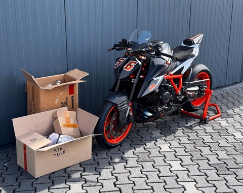 Die weltweit auf 500 Stück limitierte KTM 1290 SUPER DUKE RR als Rennstreckenumbau mit Rennstreckenverkleidung